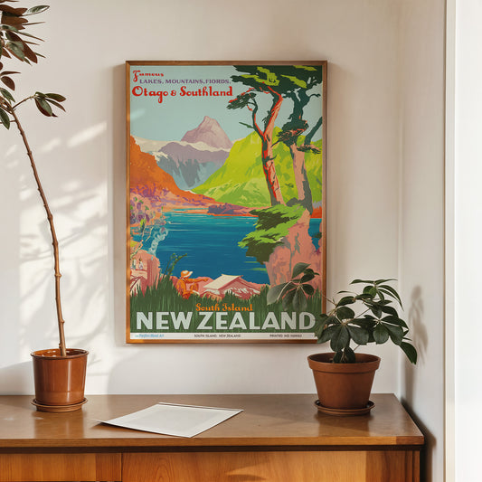 New Zealand Vintage Travel Poster 50x70cm Art Print