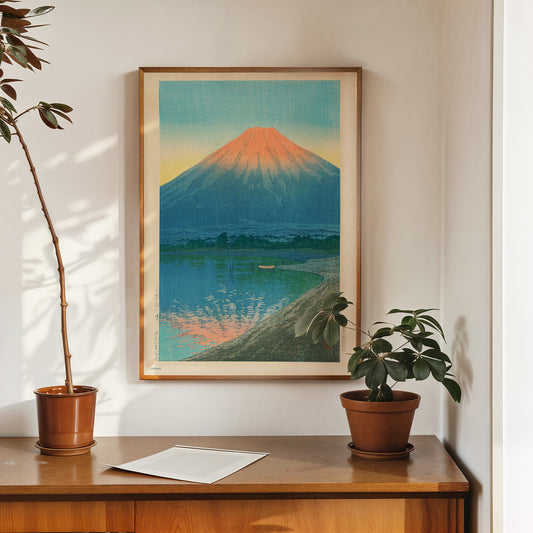 Daybreak over Lake Yamanaka & Mount Fuji Japanese Poster by artist Kawase Hasui 50x70cm Art Print